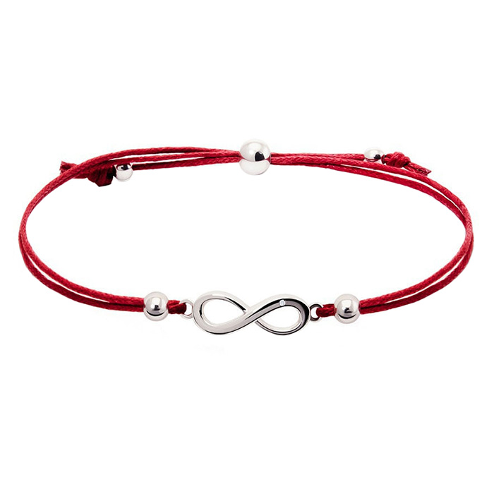 Оберег и стильный аксессуар — браслет с красной нитью и вставкой из серебра.